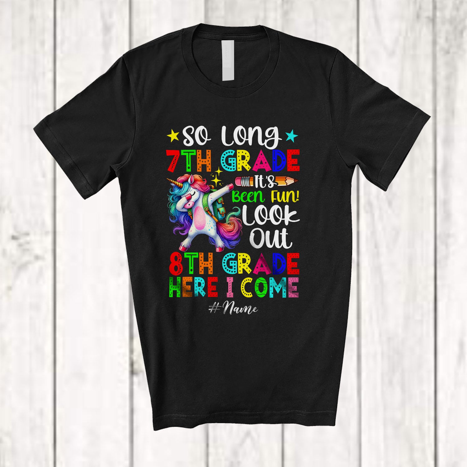 Personalized So Long 7th Grade Look Out 8th Grade; Lovely Last Day Of School Custom Name Unicorn T-Shirt