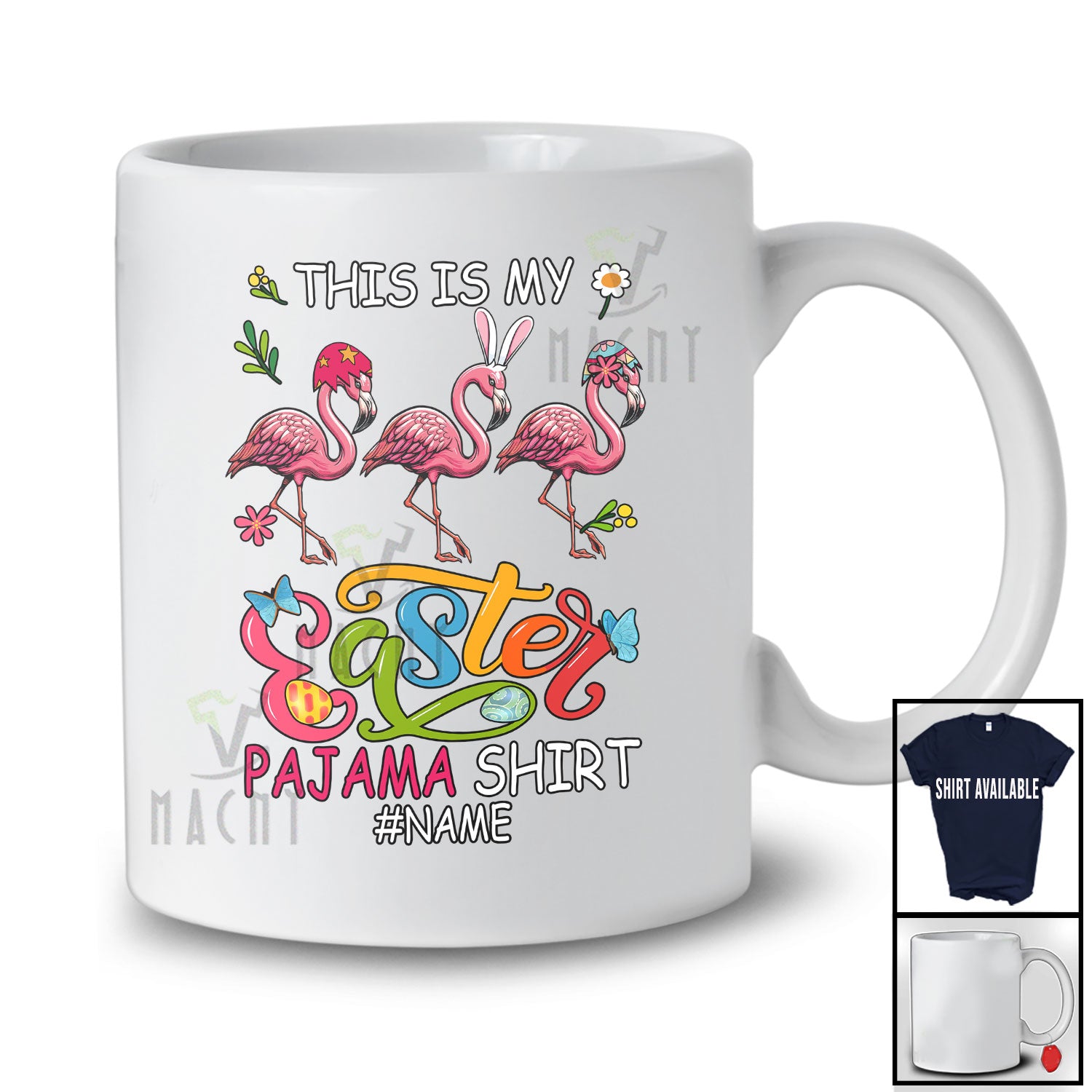 Personalized This Is My Easter Pajama Shirt; Lovely Custom Name Flamingo Eggs Bunnies; Family T-Shirt