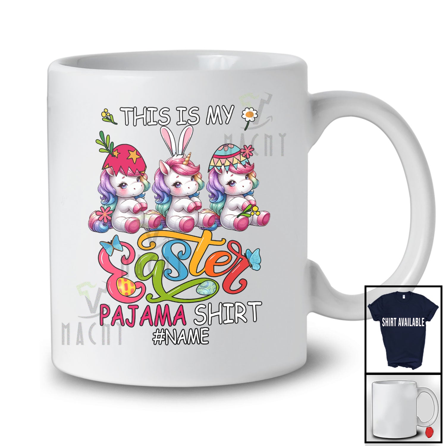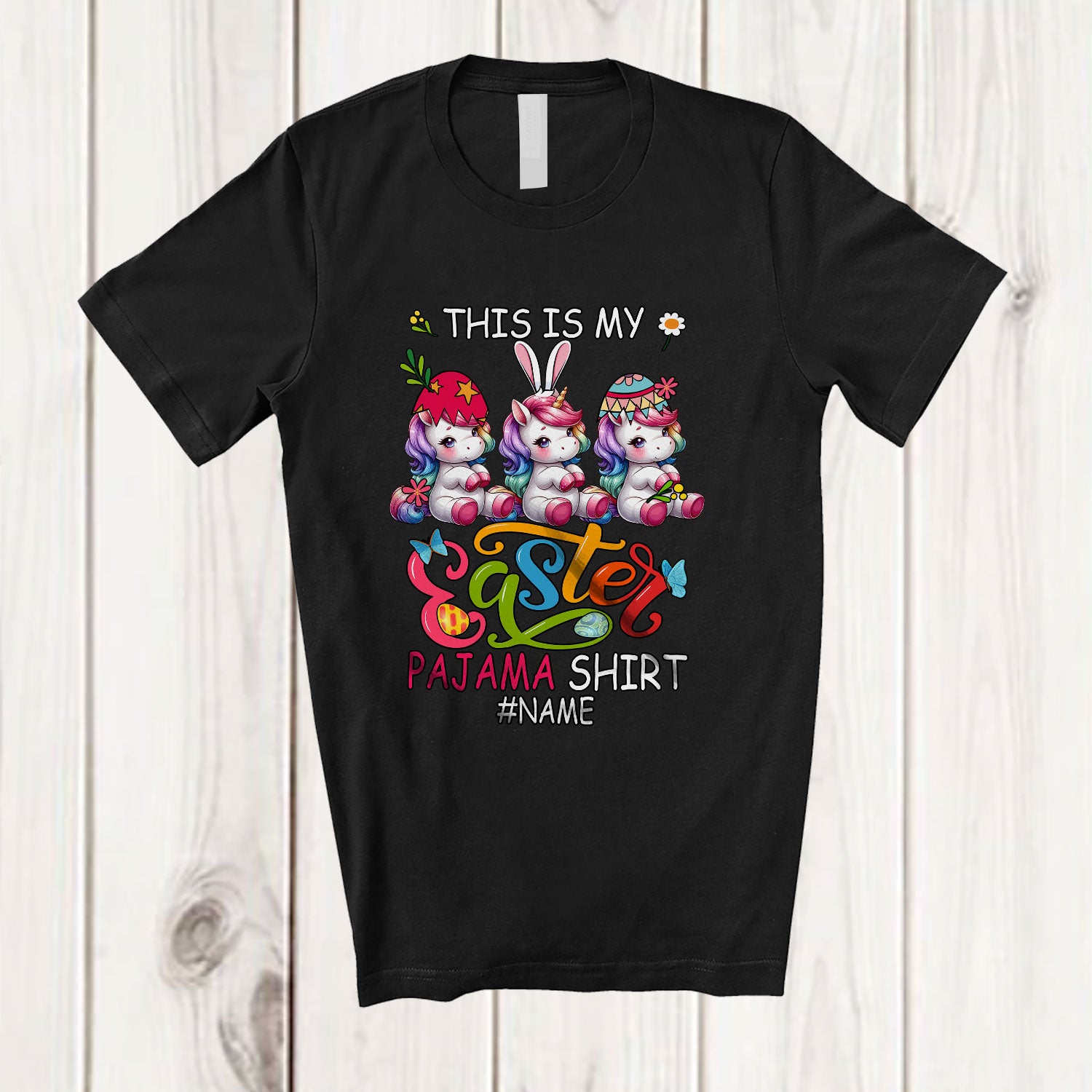 Personalized This Is My Easter Pajama Shirt; Lovely Custom Name Unicorn Eggs Bunnies; Family T-Shirt