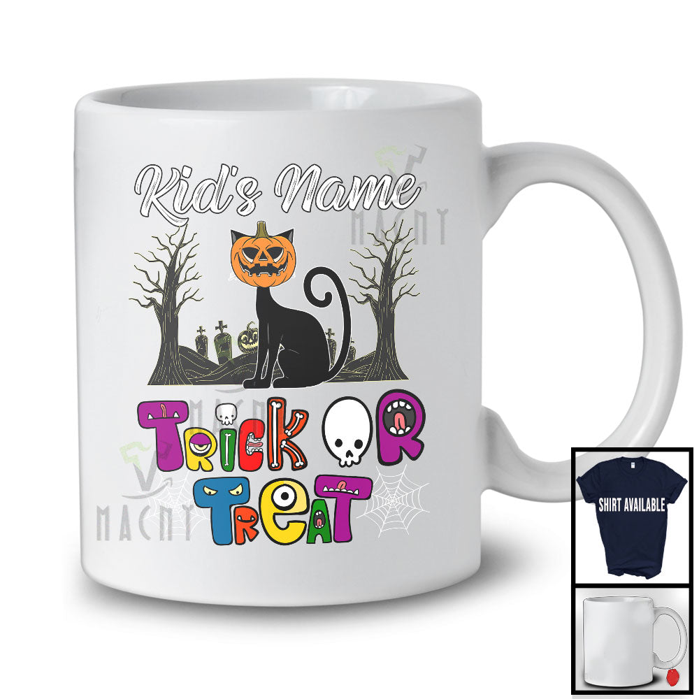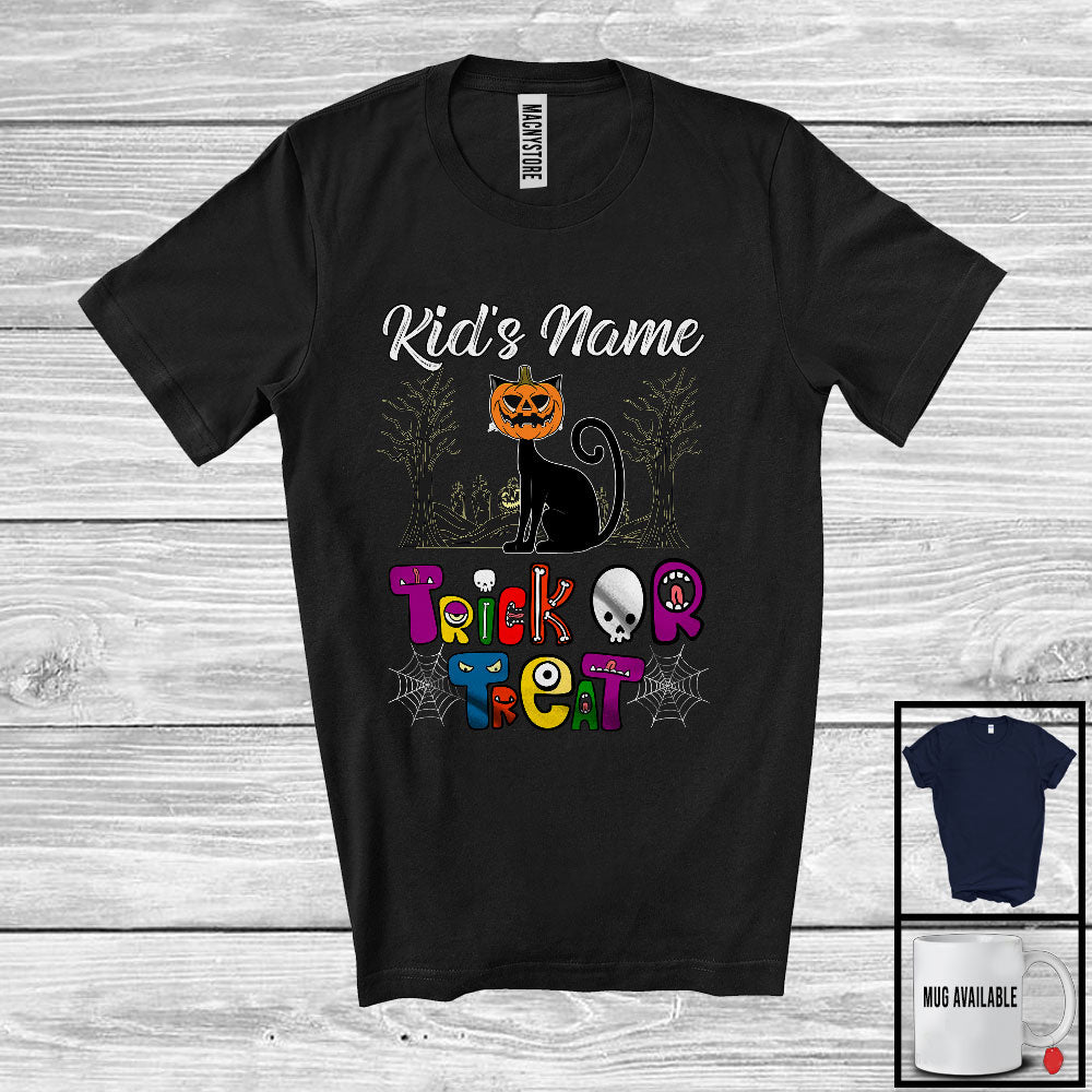 This Personalized Trick Or Treat, Humorous Halloween Cat Owner Custom Name, Pumpkin Face T-Shirt is great idea gift for your family, friends in this birthday, christmas, mother's day, father's day, patrick's day or any holiday.