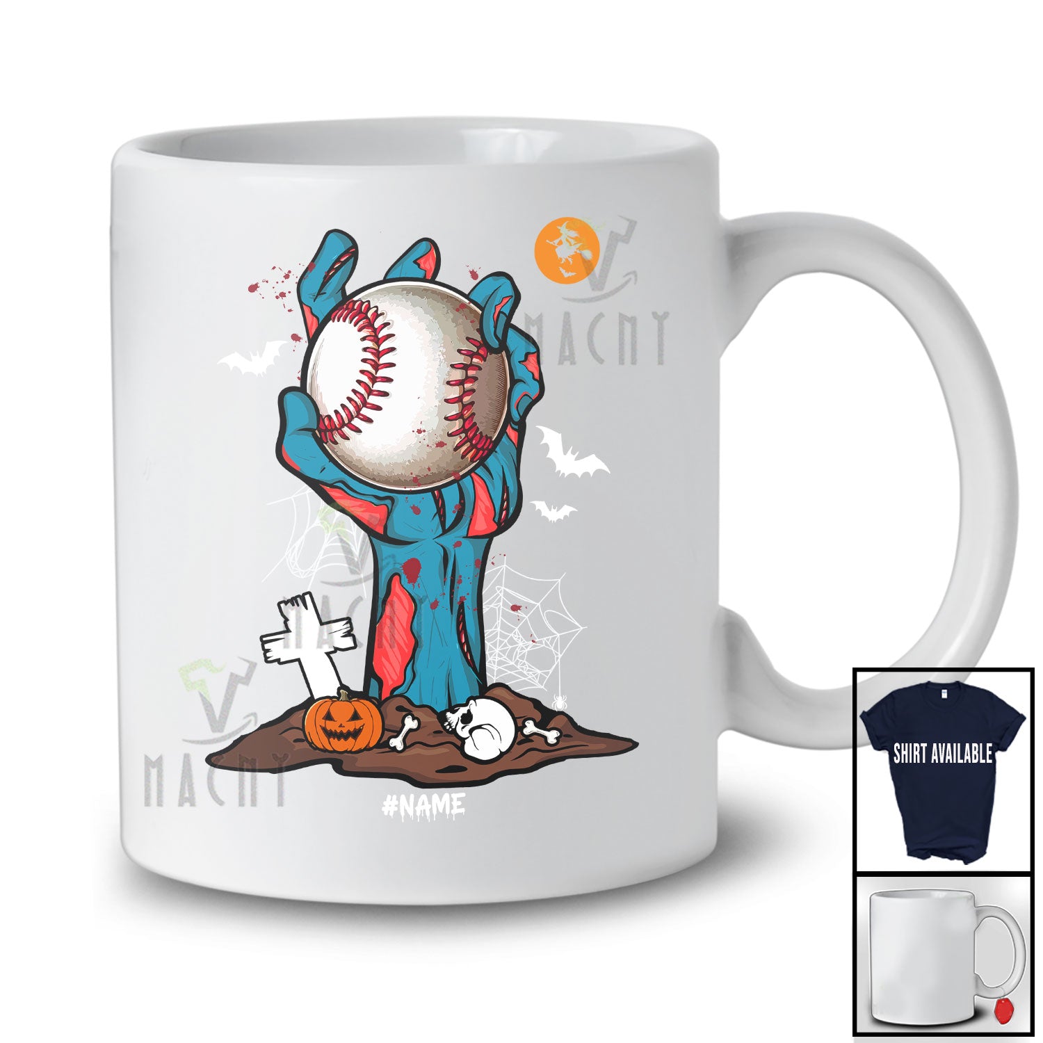 new MacnyStore - Personalized Zombie Hand Holding Baseball Ball; Horror Halloween Custom Name Player Sport Team T-Shirt – Macnystore