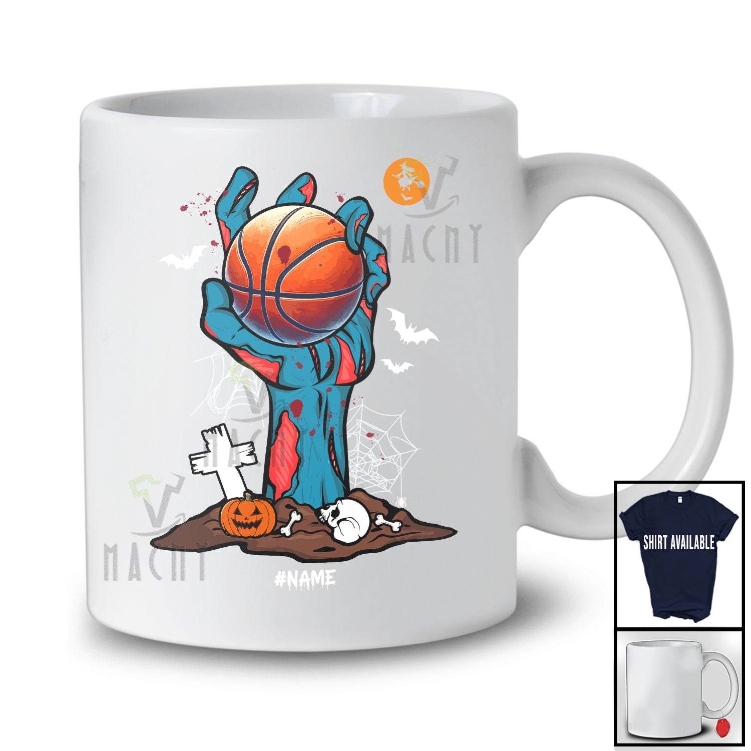 Personalized Zombie Hand Holding Basketball Ball; Horror Halloween Custom Name Player Sport Team T-Shirt. This cotton t-shirt is a durable staple product with a classic fit. One of the most popular items, it has a relaxed style made for everyday and casual wear.
