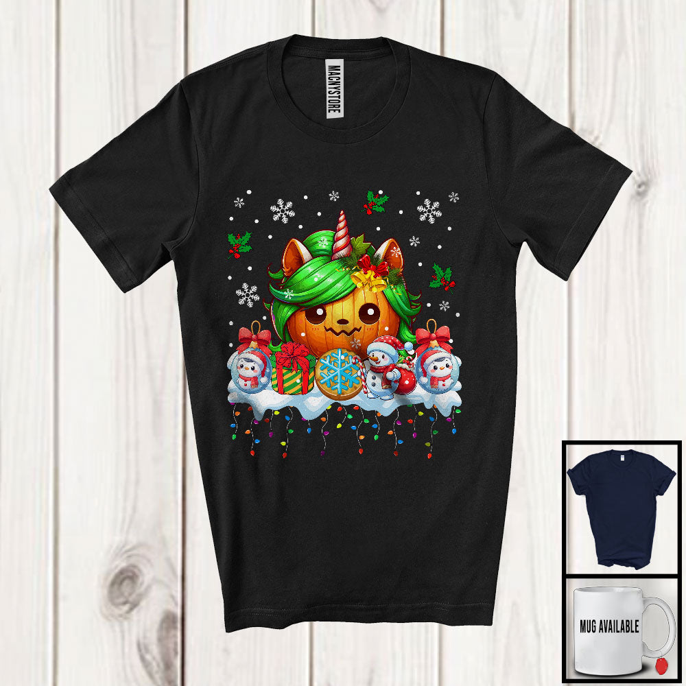 new MacnyStore - Pumpkin Unicorn Face, Adorable Christmas Snow Around Snowman, X-mas Family Group T-Shirt – Macnystore