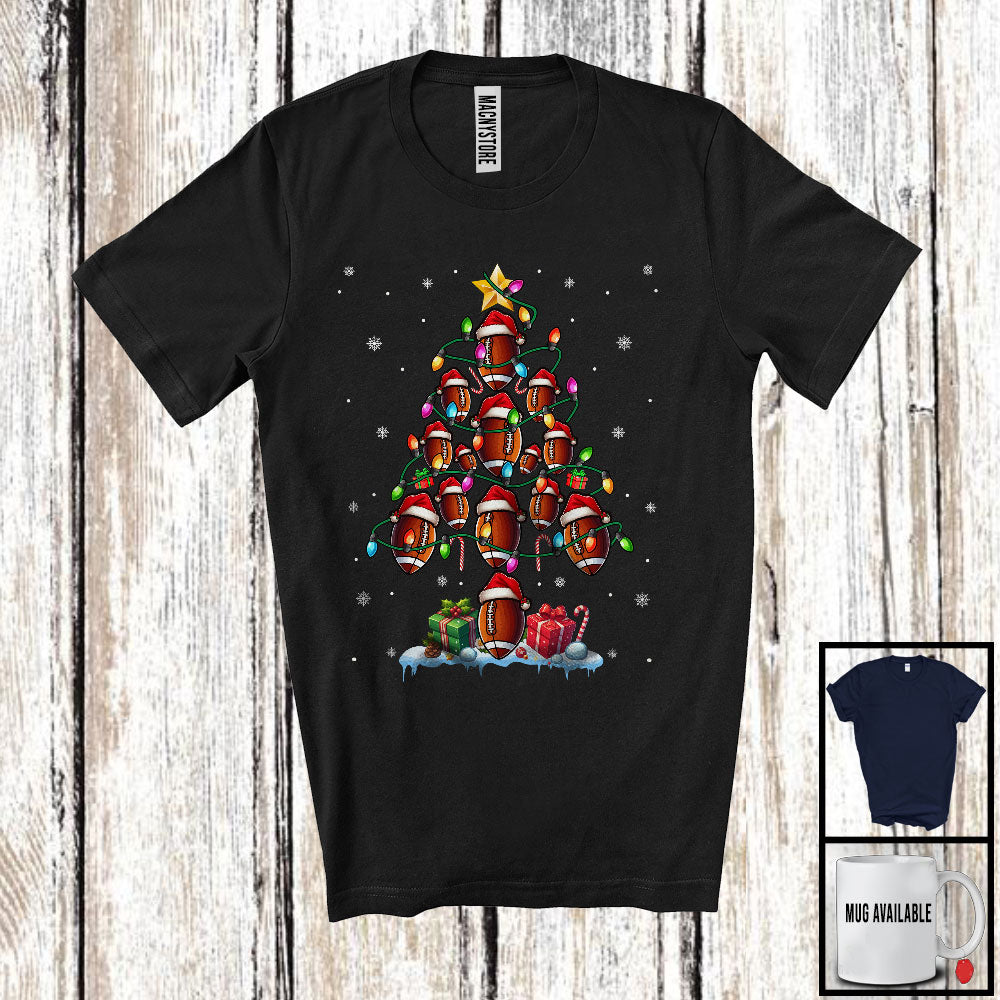 Santa Football Christmas Tree; Fantastic X-mas Lights Football Equipment Snow; Sport Player T-Shirt