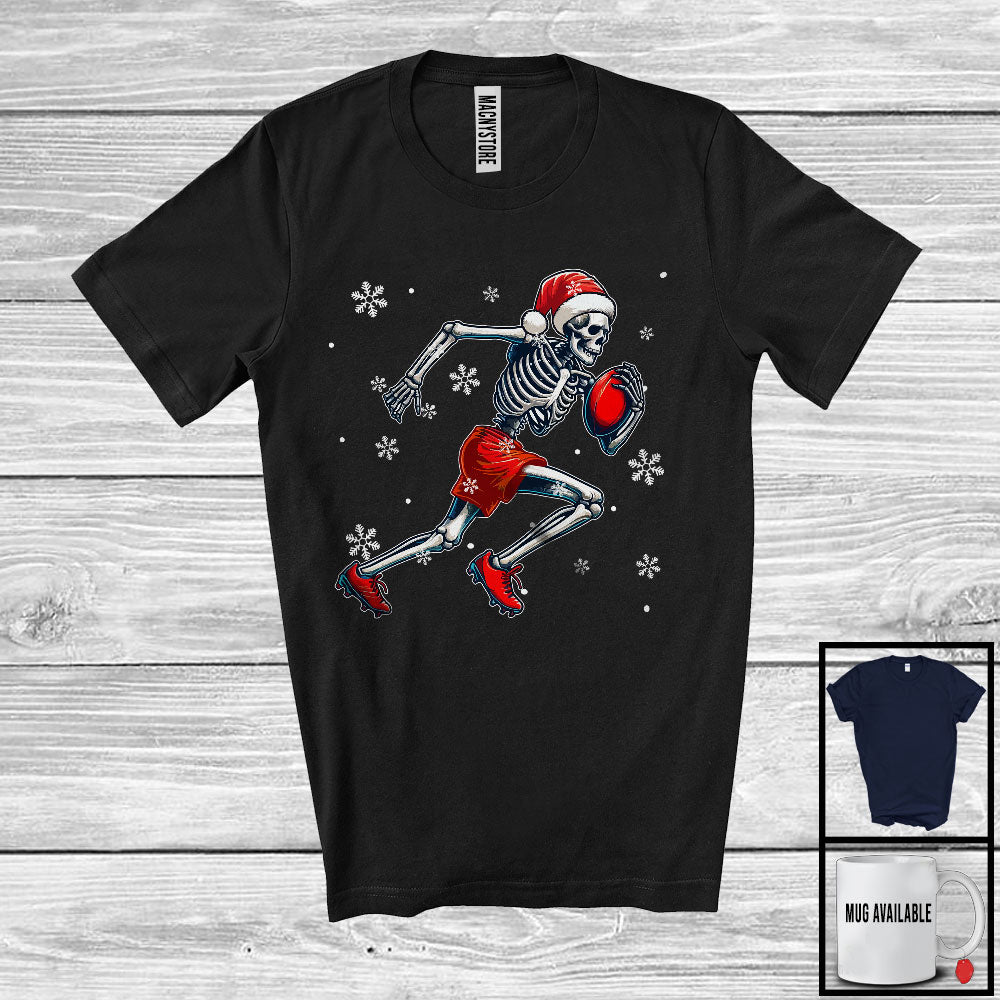 Santa Skeleton Playing Football, Awesome Christmas Snow Football Player Lover, Sport Team T-Shirt
