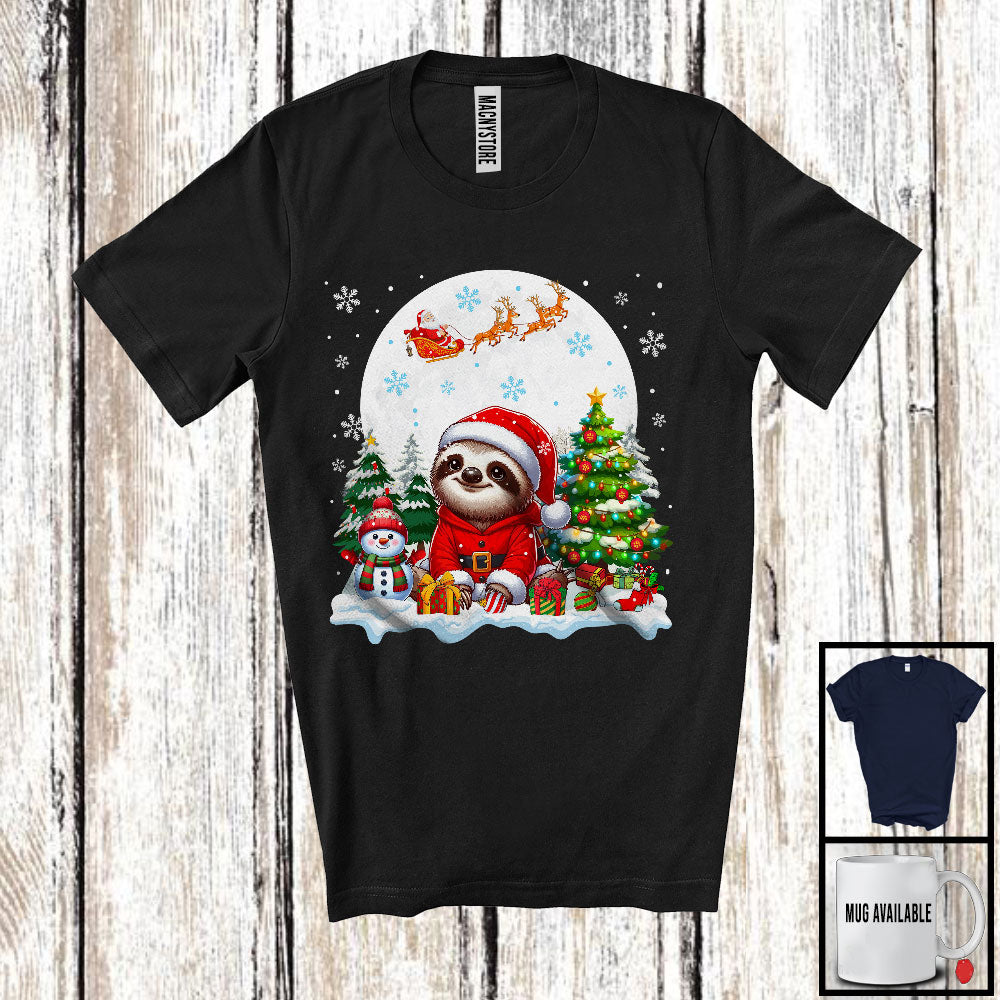 Santa Sloth With X-mas Tree Snowman, Adorable Christmas Santa Wild Animal, Family Group T-Shirt