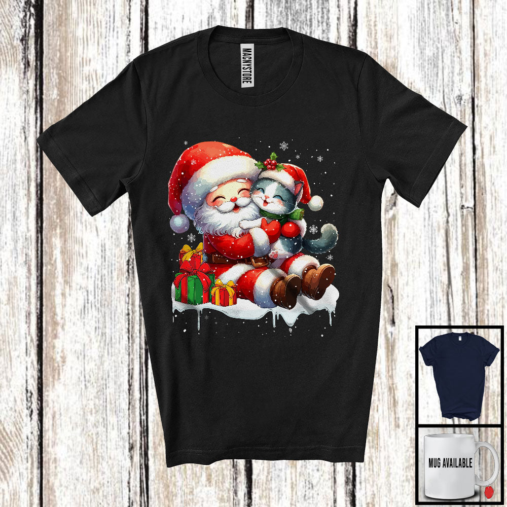 Santa With Cat; Lovely Christmas Snowing Santa Cat Owner Lover; Matching Family Group T-Shirt