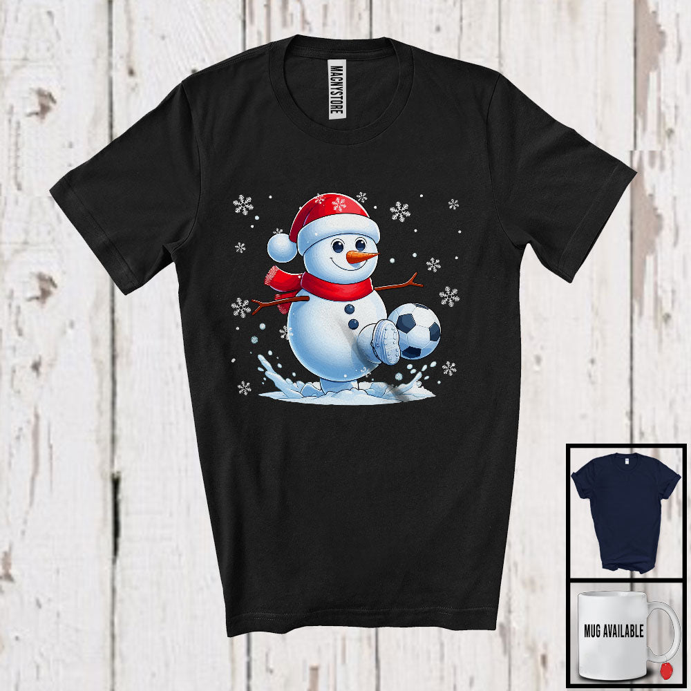 Snowman Playing Soccer; Merry Christmas Snowing Santa Snowman; Sport Player Team T-Shirt
