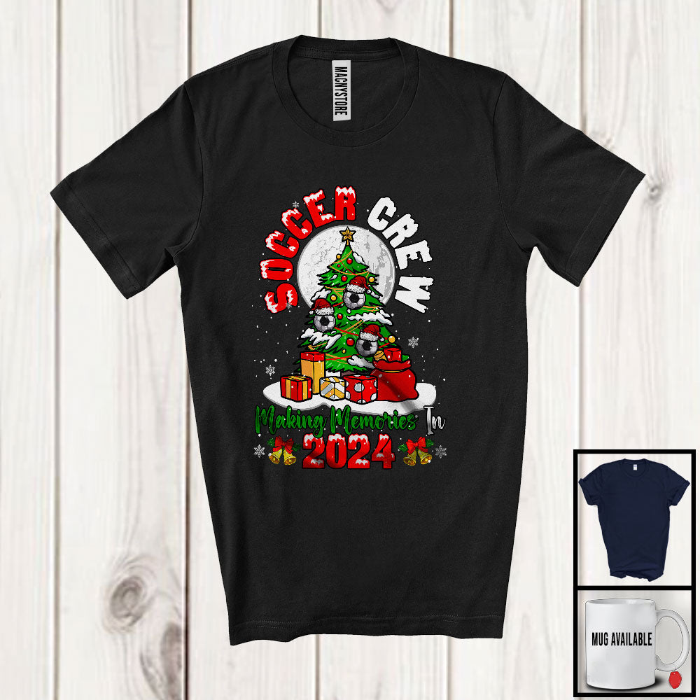 Soccer Crew Making Memories In 2024; Joyful Christmas Tree Moon; Sport Player Group T-Shirt