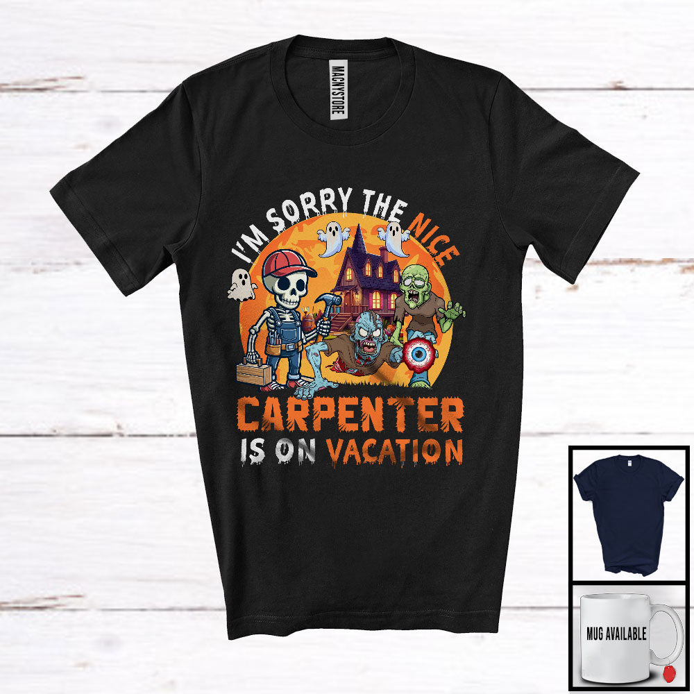 Sorry The Nice Carpenter Is On Vacation, Sarcastic Halloween Zombie Carpenter, Skeleton T-Shirt