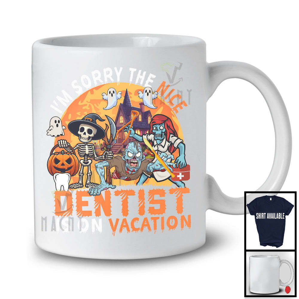 This Sorry The Nice Dentist Is On Vacation, Sarcastic Halloween Zombie Dentist, Skeleton Pumpkin T-Shirt is great idea gift for your family, friends in this birthday, christmas, mother's day, father's day, patrick's day or any holiday.