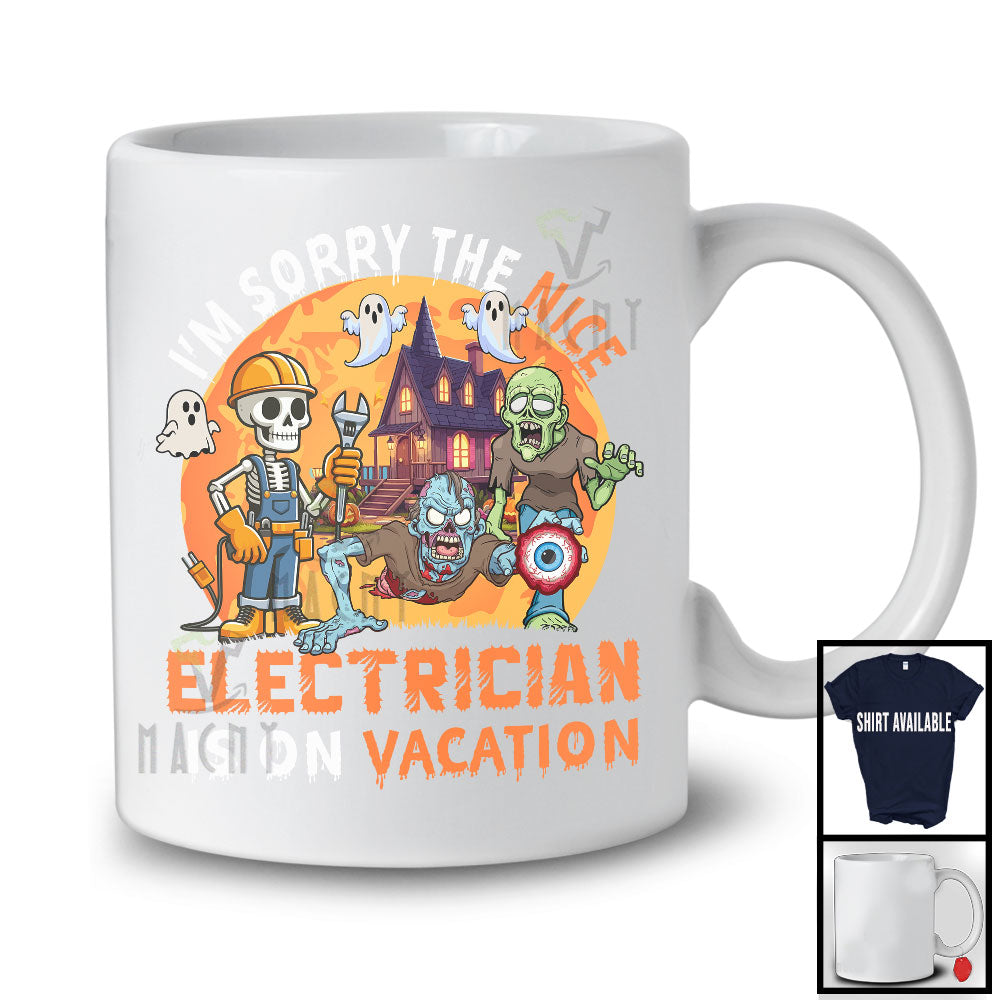 new MacnyStore - Sorry The Nice Electrician Is On Vacation, Sarcastic Halloween Zombie Electrician, Skeleton T-Shirt – Macnystore