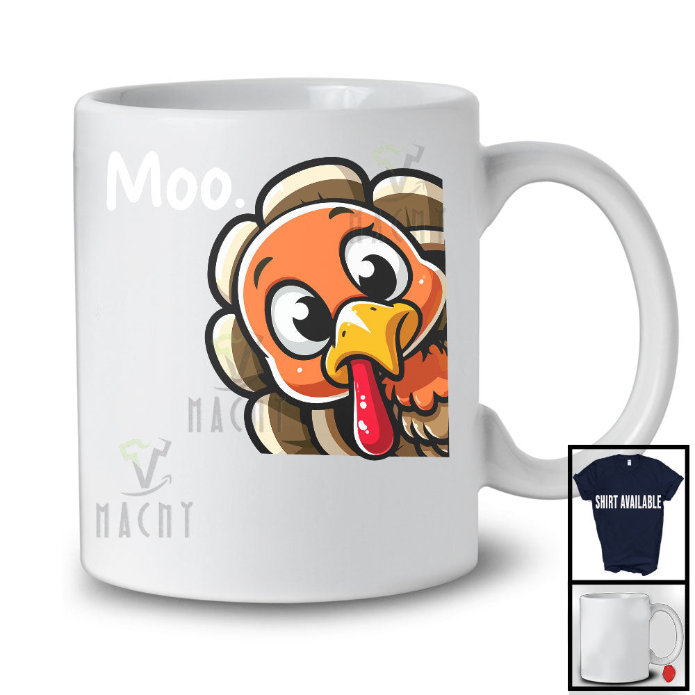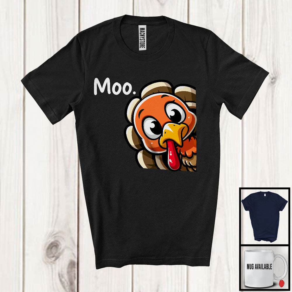 Surprise Turkey Moo; Humorous Thanksgiving Fake Turkey Face; Cow Farm Animal Farmer T-Shirt