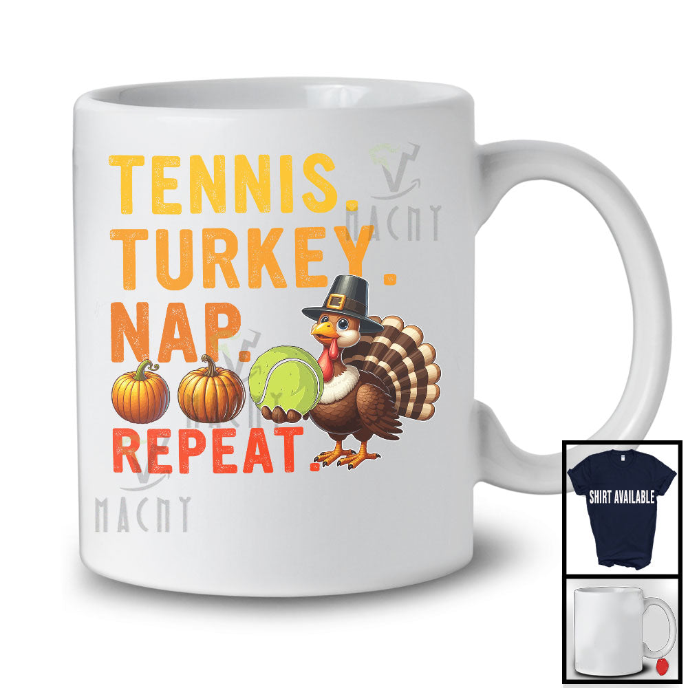 Tennis Turkey Nap Repeat, Humorous Thanksgiving Turkey Tennis Player, Sport Team T-Shirt