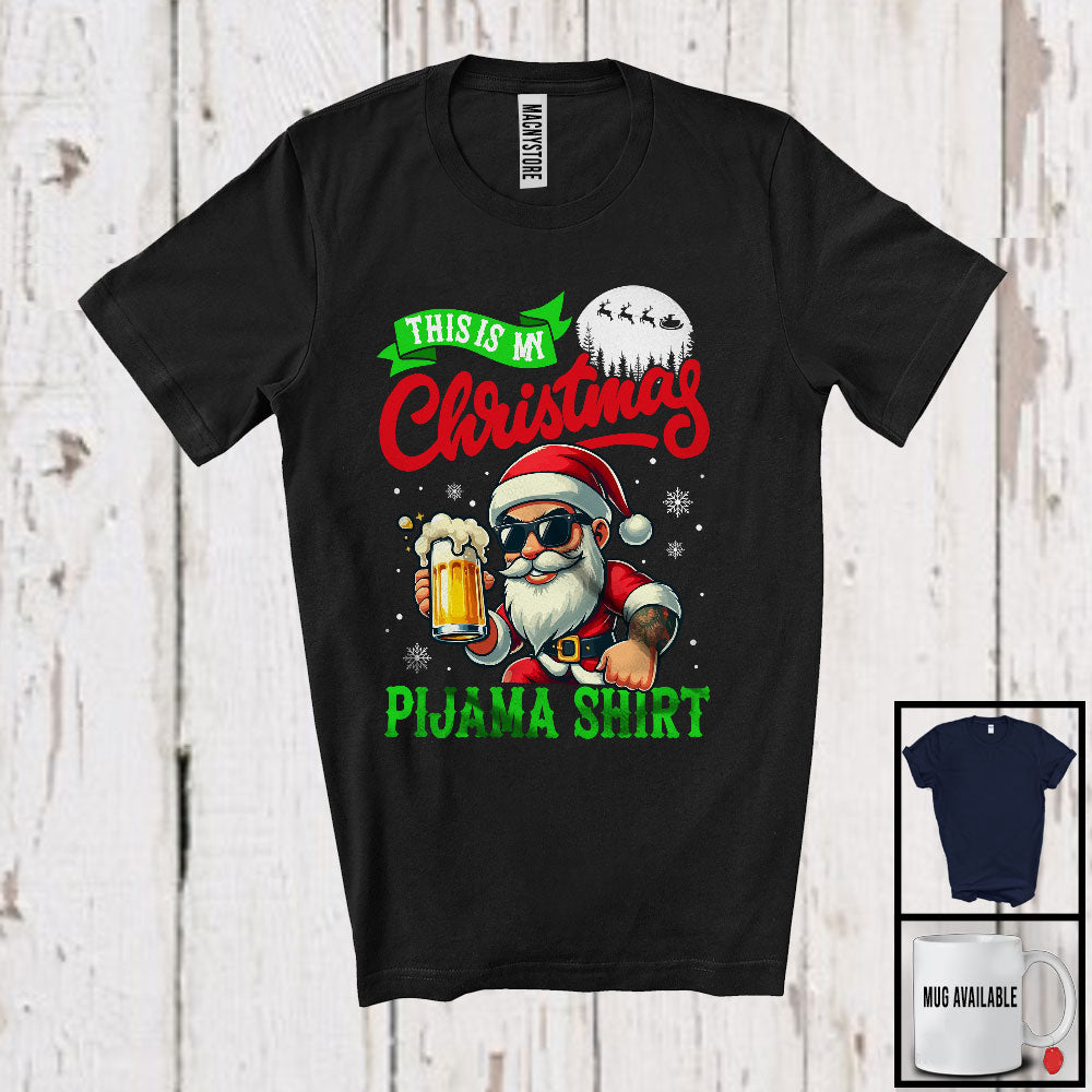 • This Is My Christmas Pajama Shirt; Awesome X-mas Santa Beer Drinking; Drunker Lover T-Shirt. This cotton t-shirt is a durable staple product with a classic fit. One of the most popular items, it has a relaxed style made for everyday and casual wear.