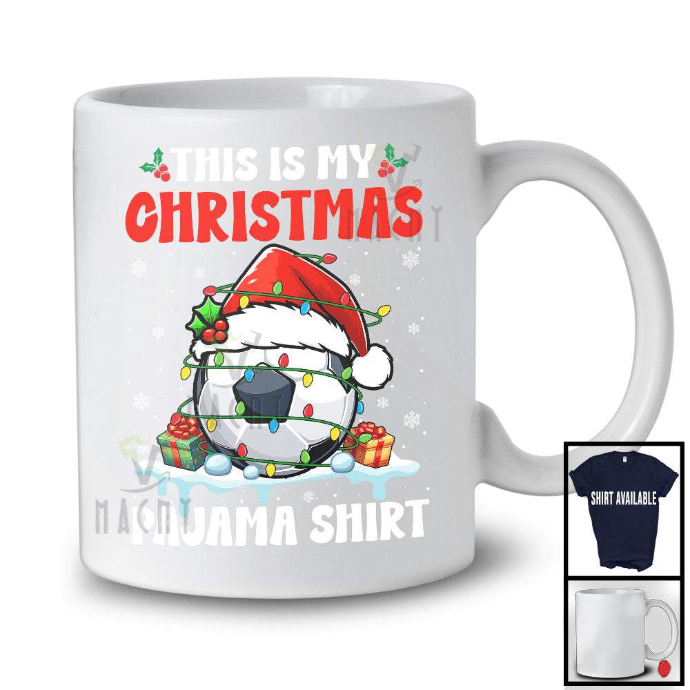 This Is My Christmas Pajama Shirt; Wonderful X-mas Lights Sport Santa Soccer Player Team T-Shirt