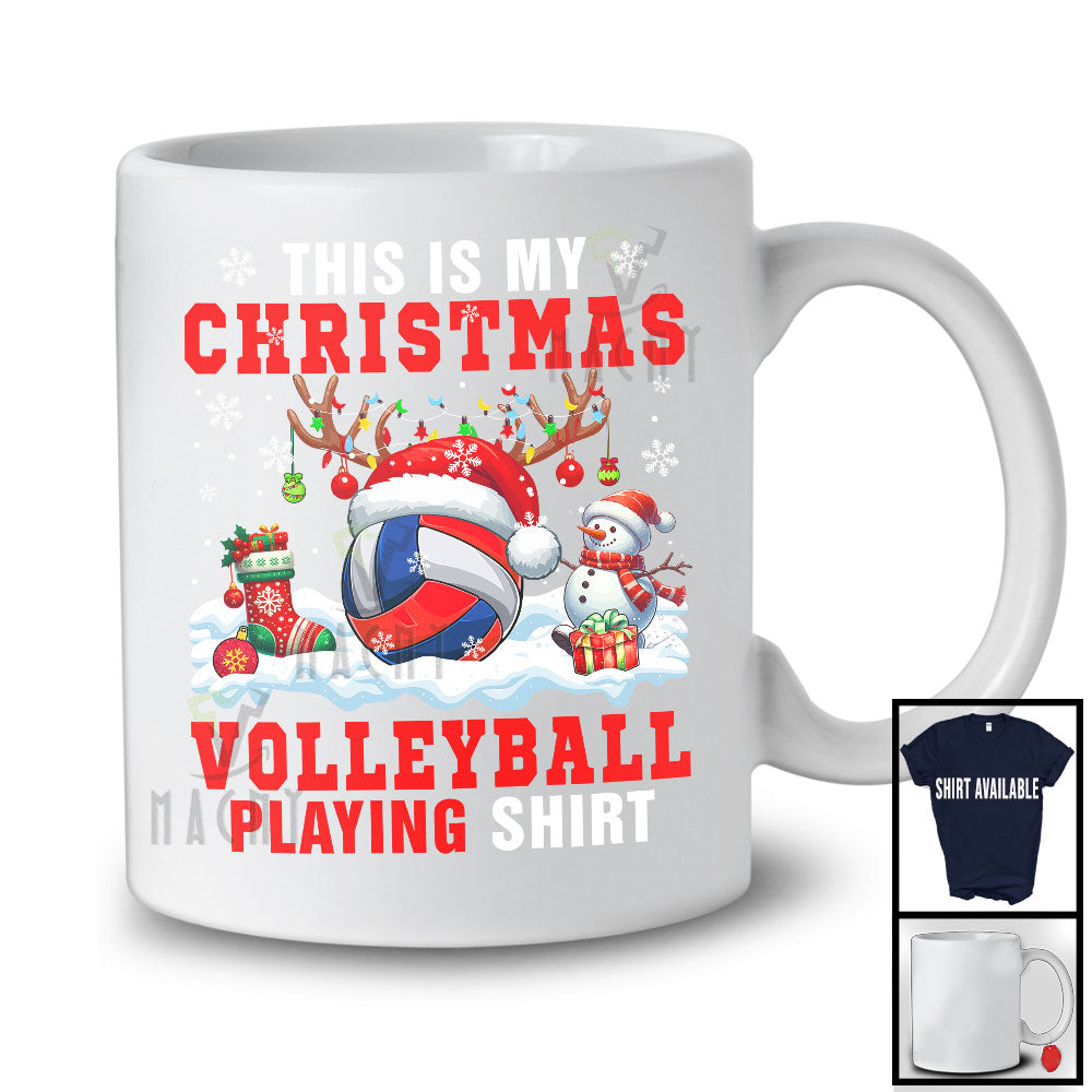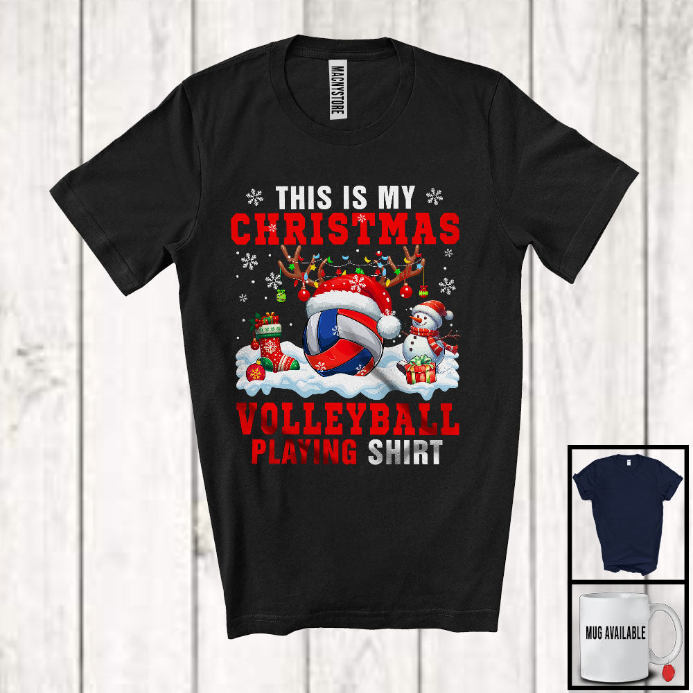 This Is My Christmas Volleyball Playing Shirt; Adorable X mas Santa Reindeer Sport Team Player T-Shirt