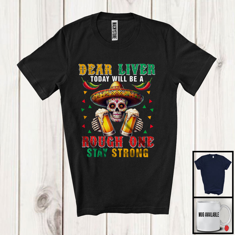 Today Will Be A Rough One, Humorous Cinco De Mayo Sombrero Sugar Skull, Drinking Beer Drunker T-Shirt