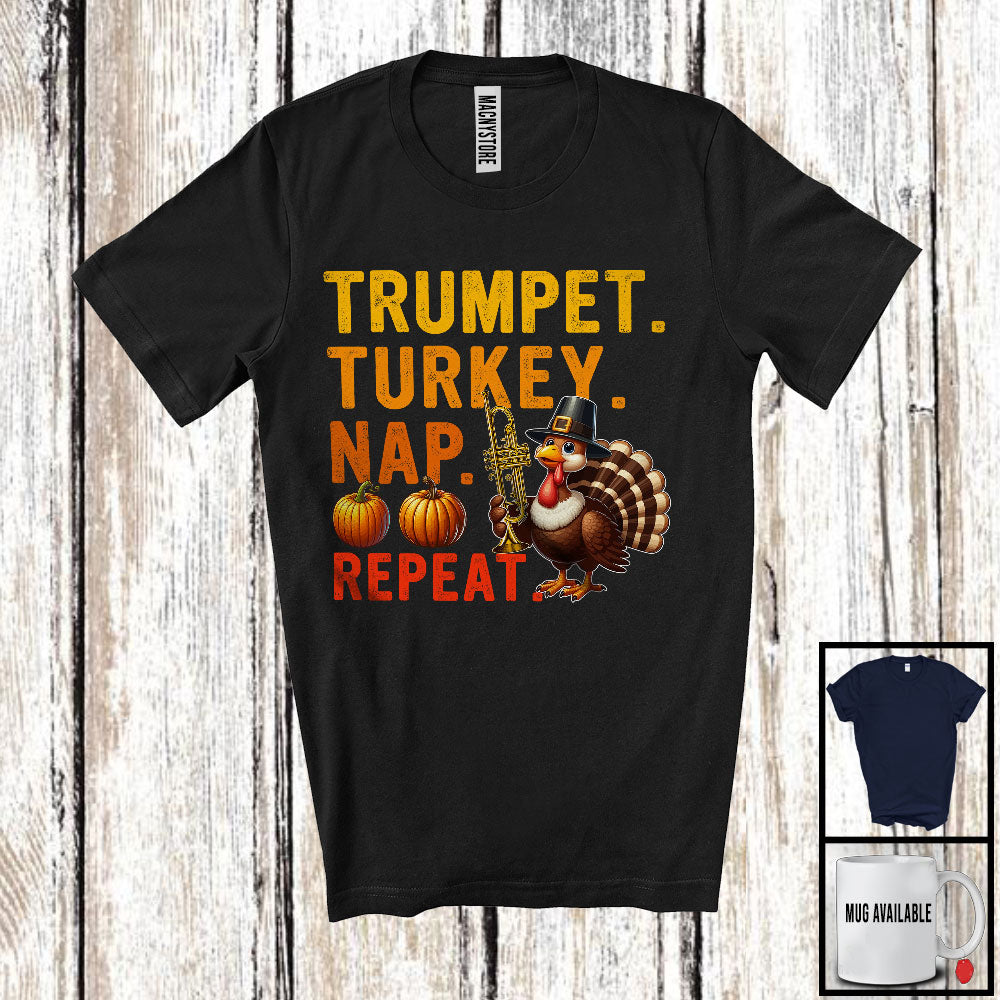 Trumpet Turkey Nap Repeat, Humorous Thanksgiving Turkey Trumpet Player, Musical Instruments T-Shirt