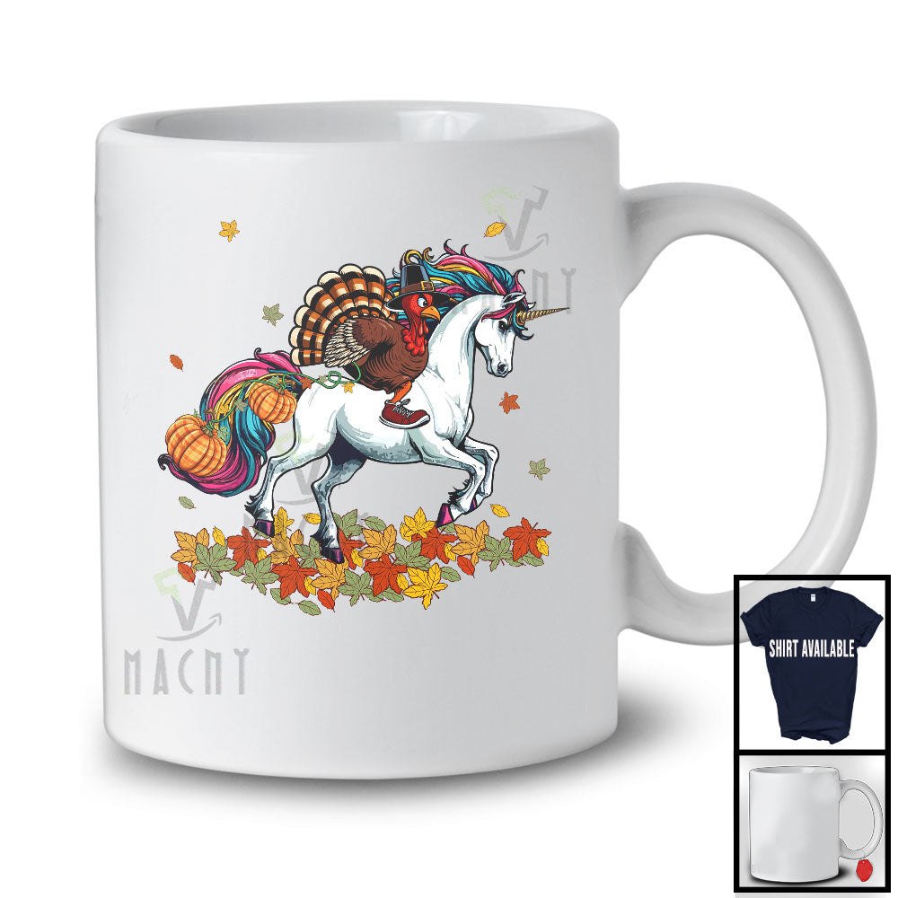 new MacnyStore - Turkey Riding Unicorn; Humorous Thanksgiving Autumn Leaves Unicorn; Pumpkin Family Group T-Shirt – Macnystore