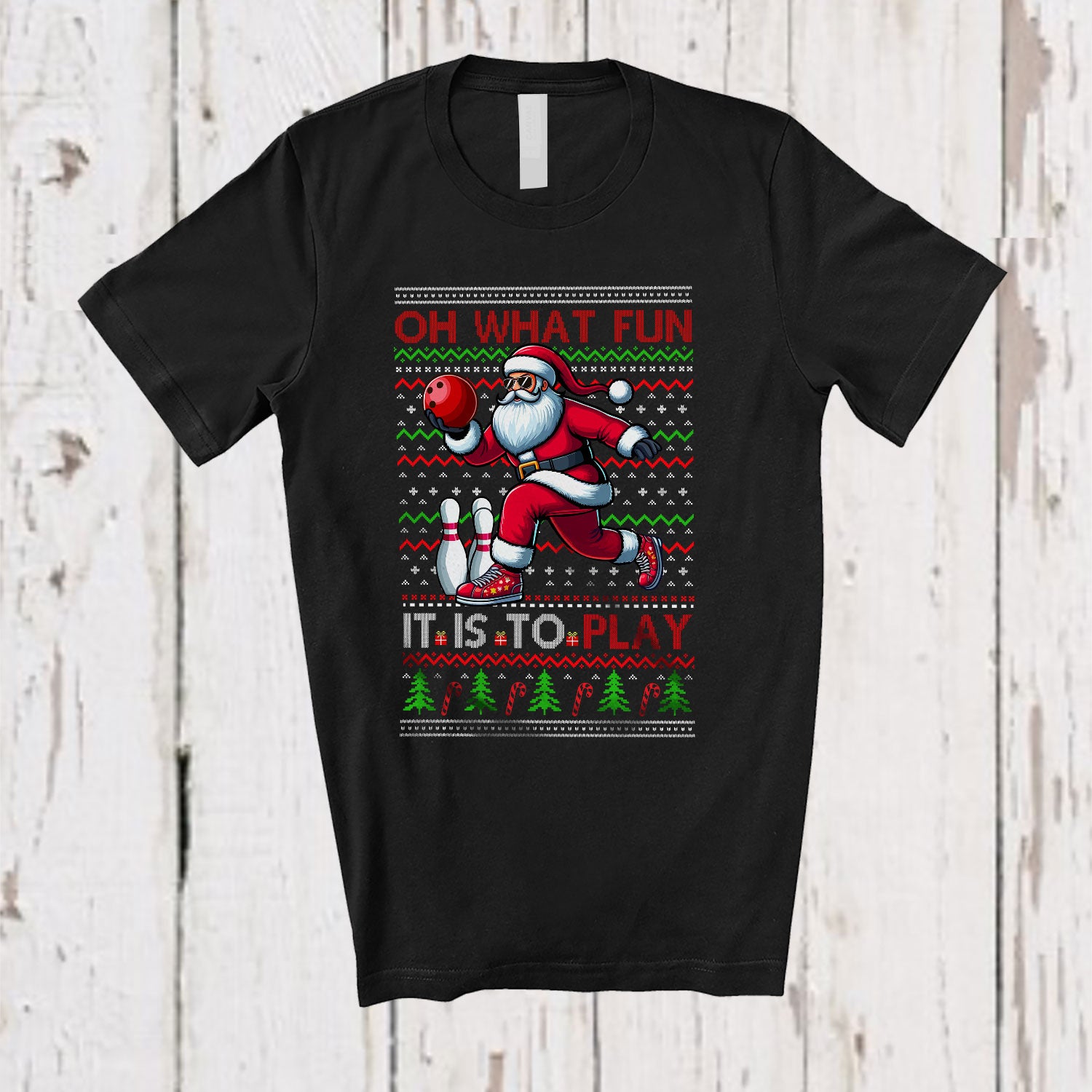 What Fun It Is To Play; Joyful Christmas Santa Playing Bowling Player; Sweater Sport Team T-Shirt