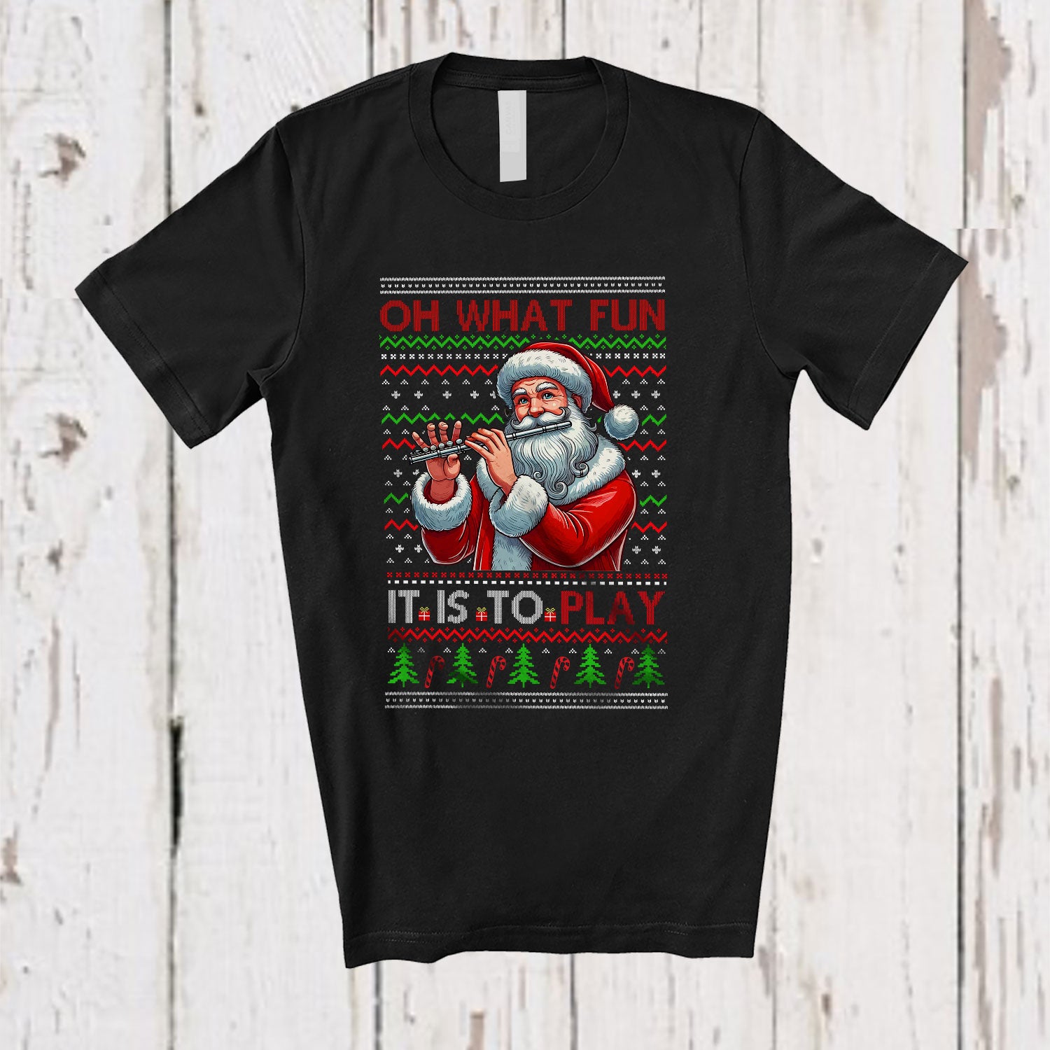 What Fun It Is To Play; Joyful Christmas Santa Playing Flute Player; Sweater Sport Team T-Shirt