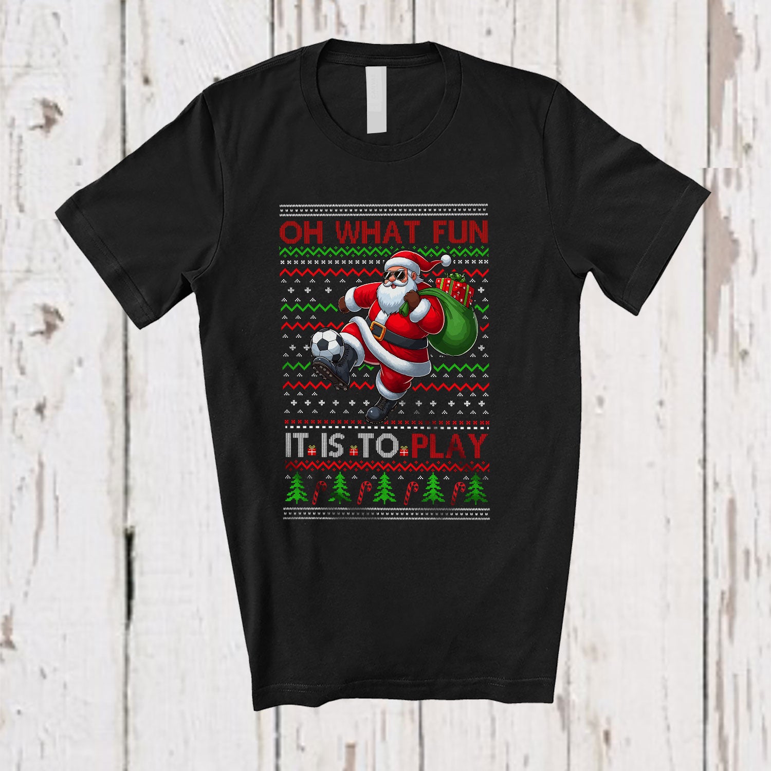What Fun It Is To Play; Joyful Christmas Santa Playing Soccer Player; Sweater Sport Team T-Shirt