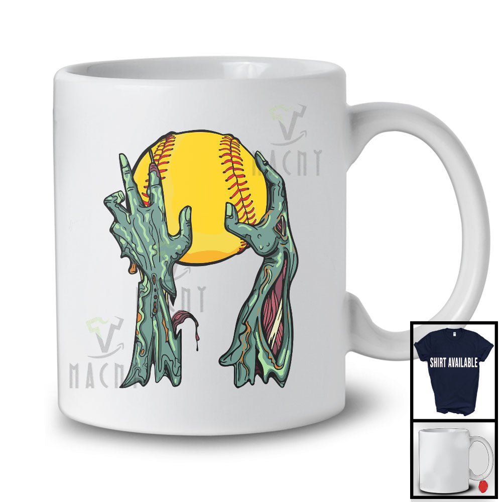 Zombie Hand Holding Softball Ball; Amazing Halloween Softball Player; Sport Team T-Shirt