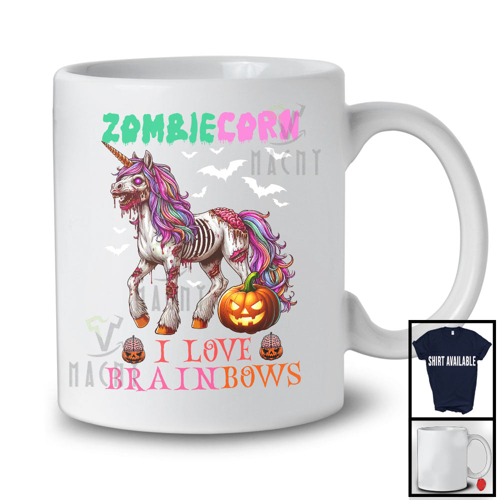 Zombiecorn I Love Brainbows; Creepy Halloween Costume Zombie Unicorn Pumpkin; Family Group T-Shirt. This cotton t-shirt is a durable staple product with a classic fit. One of the most popular items, it has a relaxed style made for everyday and casual wear.