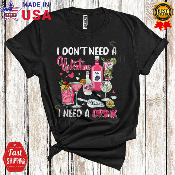 I Don't Need A Valentine I Need A Drunk Cool Funny Valentine's Day Drunk Drinking Lover T-Shirt