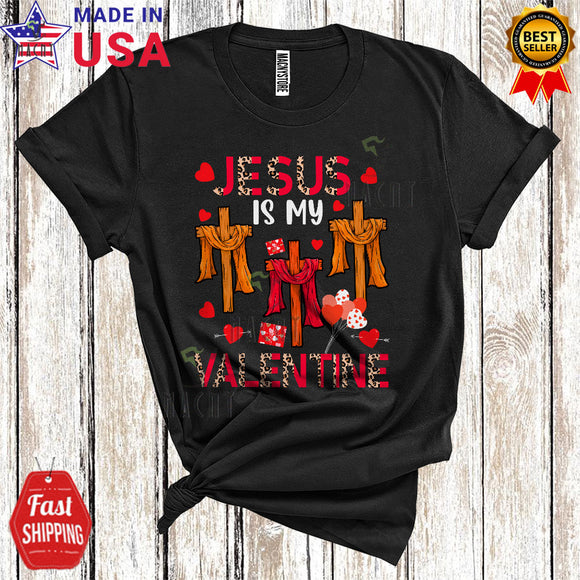 Jesus Is My Valentine Cool Cute Valentine's Day Hearts Leopard Three Cross Jesus Christian Family T-Shirt