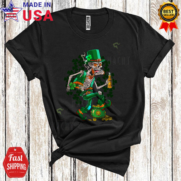 Leprechaun Skeleton Drinking Beer Funny Cool St. Patrick's Day Skull Lover Matching Drinking Team T-Shirt