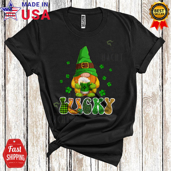 Lucky Cute Happy St. Patrick's Day Leopard Plaid Shamrock Horseshoe Leprechaun Gnome Drinking T-Shirt