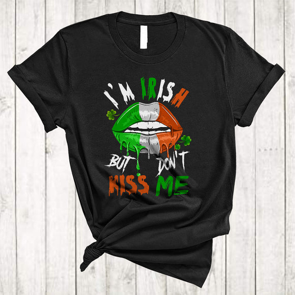 I'm Irish But Don't Kiss Me, Sarcastic St. Patrick's Day Irish Flag Lips, Lucky Shamrocks T-Shirt