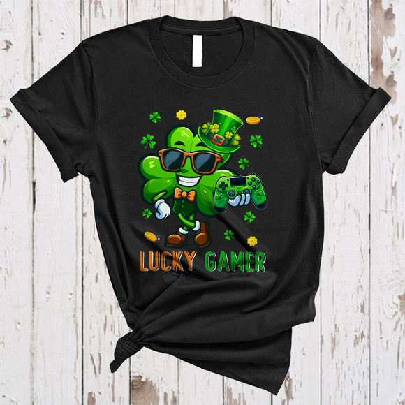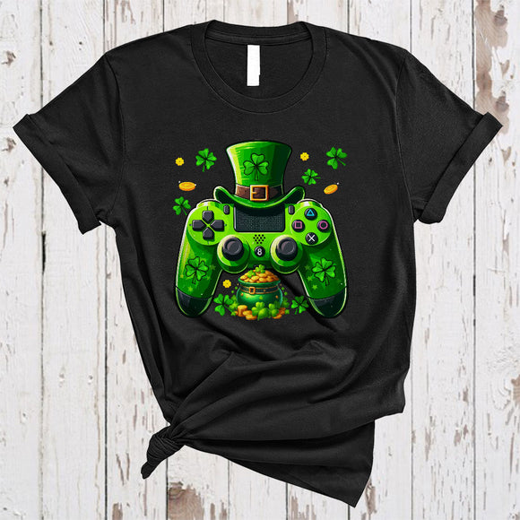 Lucky Gamer, Joyful St. Patrick's Day Shamrock Holding Game Controller, Gaming Gamer Group T-Shirt