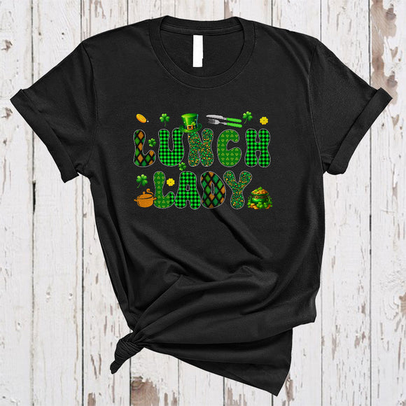 Lunch Lady, Cheerful St. Patrick's Day Plaid Irish Lucky Shamrocks, Matching Lunch Lady Squad T-Shirt