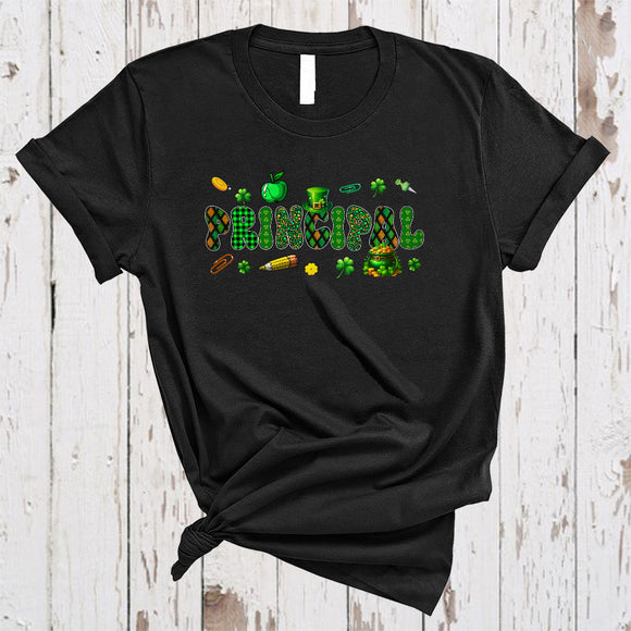 Principal, Cheerful St. Patrick's Day Plaid Irish Lucky Shamrocks, Matching Principal Squad T-Shirt