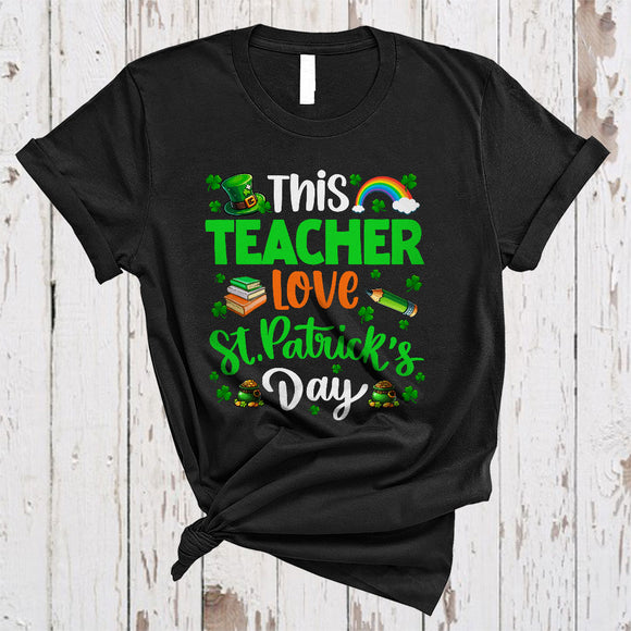 This Teacher Loves St Patrick's Day, Lovely Shamrock Rainbow, Teacher Team Squad T-Shirt
