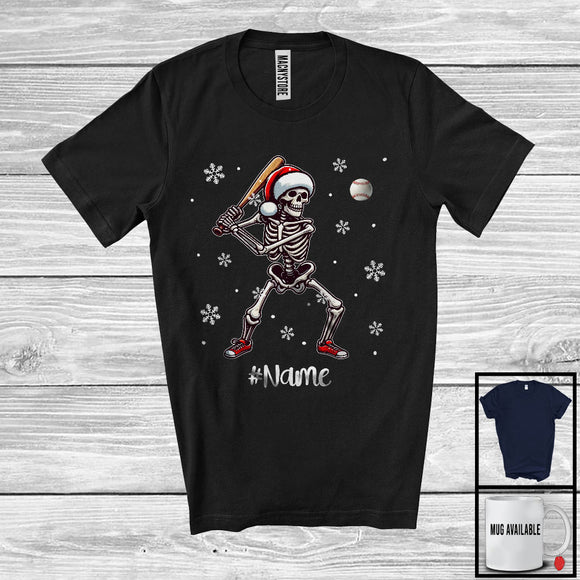 Personalized Santa Skeleton Playing Baseball, Joyful Christmas Custom Name Baseball Player T-Shirt