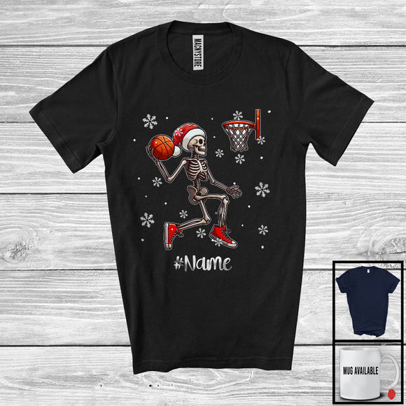 Personalized Santa Skeleton Playing Basketball, Joyful Christmas Custom Name Basketball Player T-Shirt