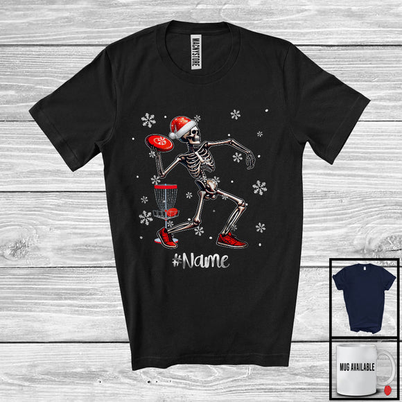 Personalized Santa Skeleton Playing Disc Golf, Joyful Christmas Custom Name Disc Golf Player T-Shirt