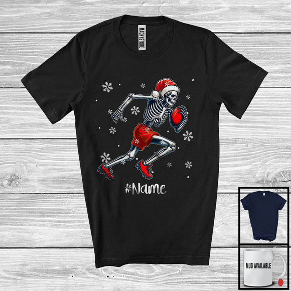 Personalized Santa Skeleton Playing Football, Joyful Christmas Custom Name Football Player T-Shirt