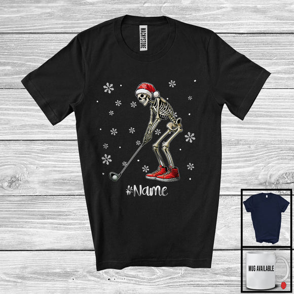 Personalized Santa Skeleton Playing Golf, Joyful Christmas Custom Name Golf Player Team T-Shirt