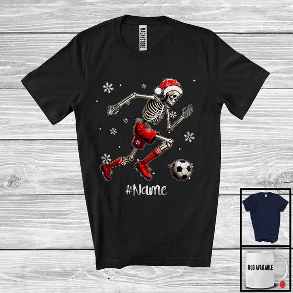 Personalized Santa Skeleton Playing Soccer, Joyful Christmas Custom Name Soccer Player Team T-Shirt