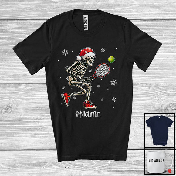 Personalized Santa Skeleton Playing Tennis, Joyful Christmas Custom Name Tennis Player Team T-Shirt