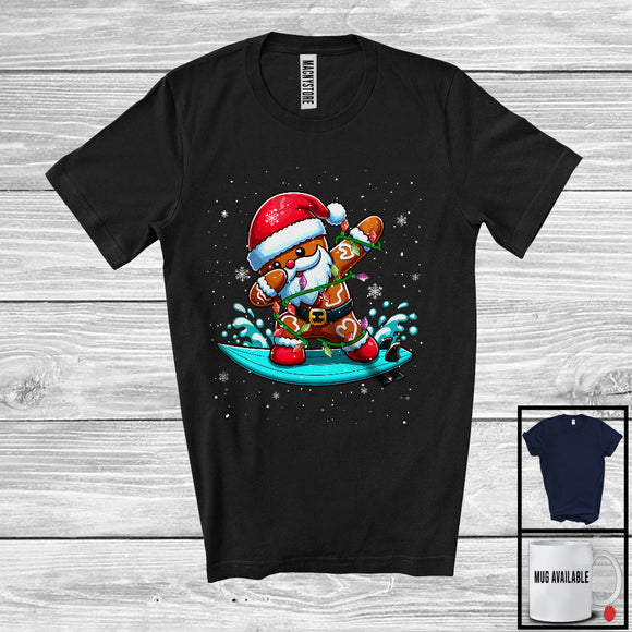 Santa Dabbing Gingerbread Man, Cheerful Christmas In July Lights Summer Vacation, Beach Surfing T-Shirt