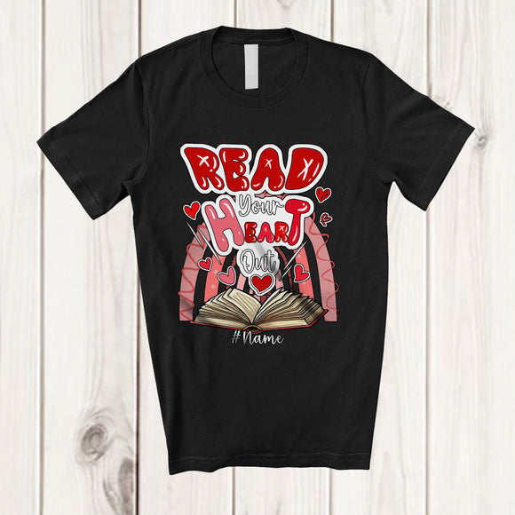 Personalized Read Your Heart Out; Lovely Valentine Book Rainbow; Custom Name Librarian Teacher T-Shirt