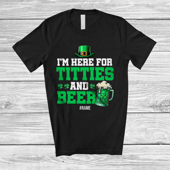 Personalized Custom Name Here For Titties And Beer; Humorous St. Patrick's Day Drinking Drunker T-Shirt
