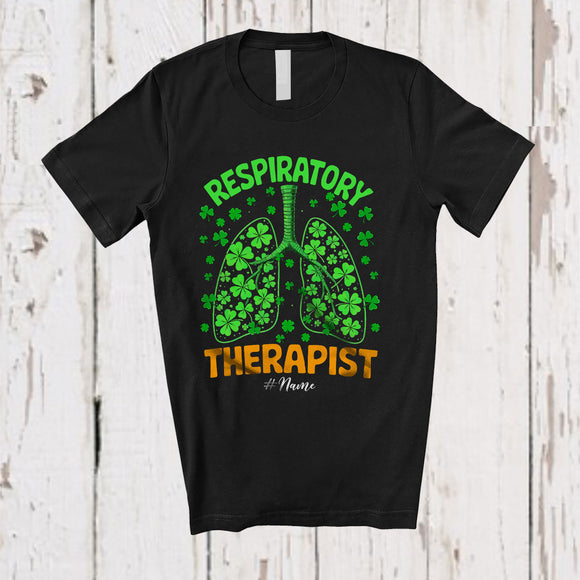 Personalized Custom Name Respiratory Therapist; Cheerful St. Patrick's Day Shamrocks Lungs T-Shirt