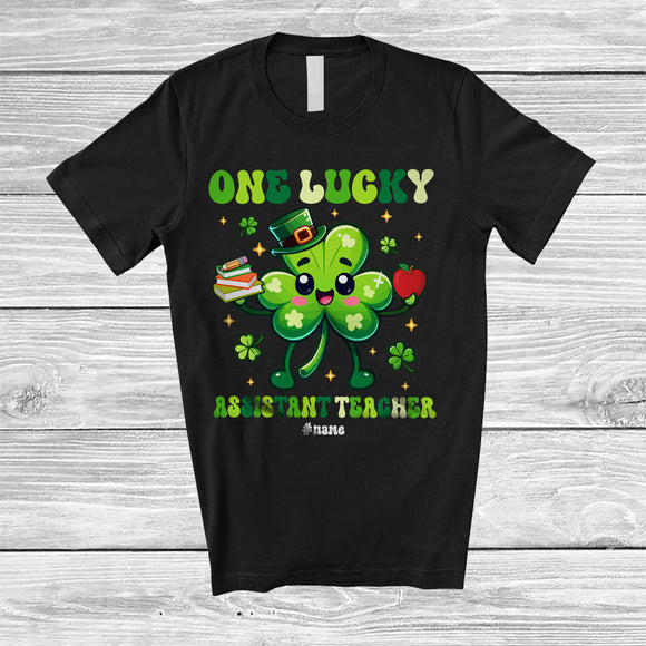 Personalized One Lucky Assistant Teacher; Awesome St. Patrick's Day Custom Name Irish Shamrocks T-Shirt